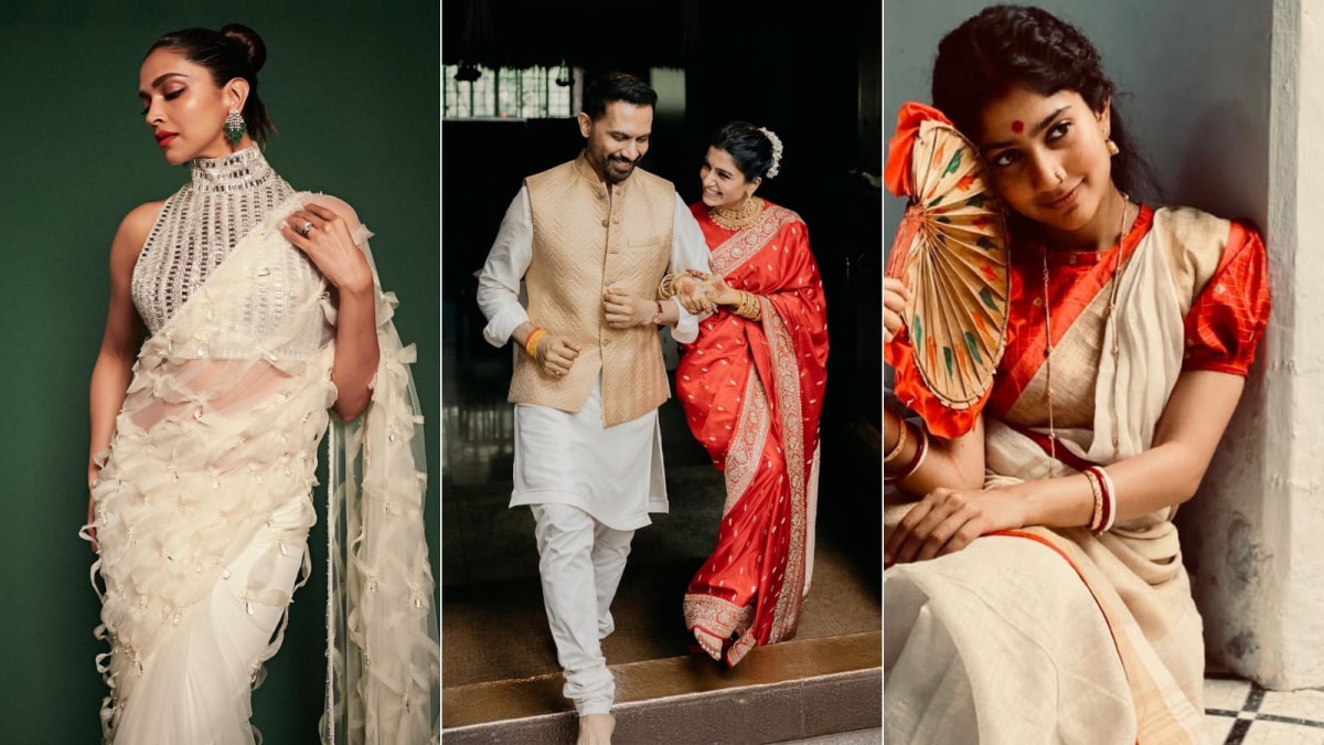 A celebrity favourite for winter weddings, this traditional short puffed sleeve blouse design with intricate detailing gives a sophisticated appeal to your saree. Sai Pallavi’s inspired blouse design features gentle gathers at the shoulder, adding a puffed effect that is trendy yet flattering. (Image-instagram/@saipallavi.senthamarai)